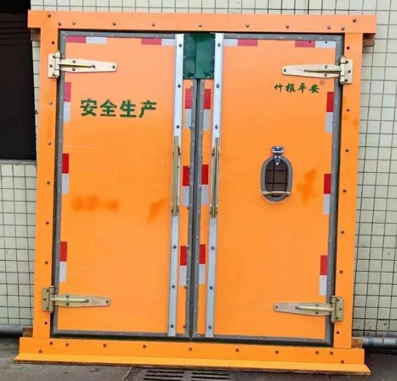 矿用竹胶板无压风门与煤矿铁质平衡无压风门相比具有防静电、与矿车剐蹭或其他设备碰撞都不起火花等优点,因此用量大,特别是瓦斯浓度高的矿井几乎全部采用木质风门;矿压、地压的因素导致巷道及地面变形,铁质无压风门的门扇无法变小或变大导致巷道变形后无法再继续使用只能更换新的风门,而抗矿压地压导致巷道变形后木头风门的门扇可以在上下及靠近中心线的边沿根据需要添加木条增大门扇或用刀具切割门扇使其变小,故煤矿竹胶板无压风门在巷道变形后经处理绝大部分仍正常使用,降低了煤矿的生产成本;故矿压、地压矿井更适合使用木质无压风门。